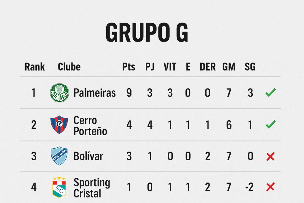 Tabela atualizada da Libertadores, grupo do Palmeiras.